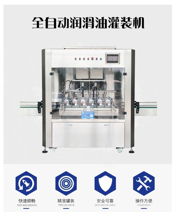 產(chǎn)品簡介: 本機(jī)是根據(jù)潤滑油的特性而設(shè)計(jì)的一款全自動(dòng)稱重式潤滑油灌裝機(jī),該機(jī)設(shè)計(jì)緊湊合理,外形簡潔美觀大氣,灌裝量調(diào)節(jié)方便,精度高,借鑒了歐美國家的先進(jìn)灌裝流程控制技術(shù),進(jìn)口彩